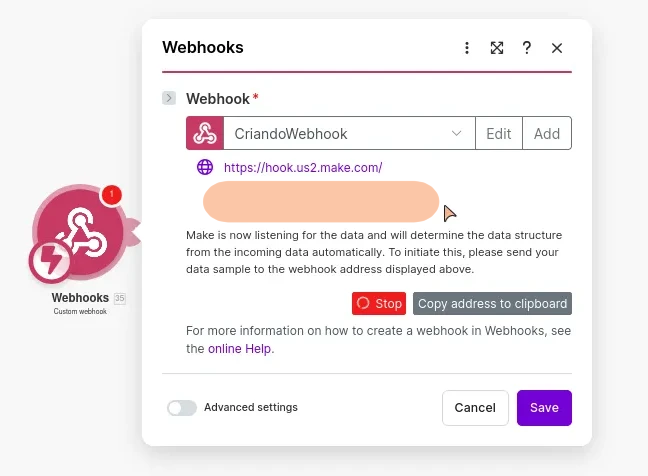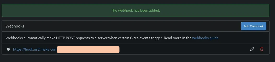 … e pronto! O Webhook já está criado. E será dado um Link que será usado para receber a “mensagem” para ativar todo o processo da postagem.