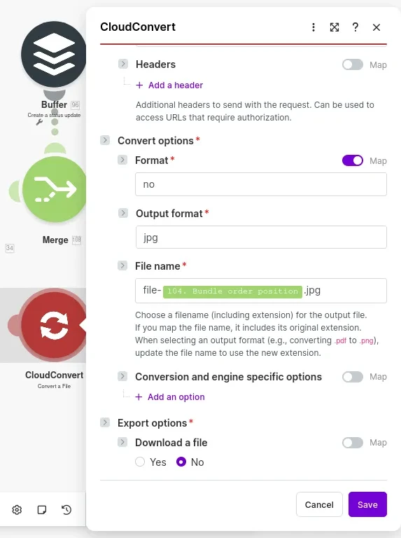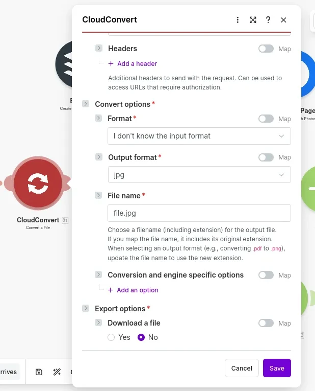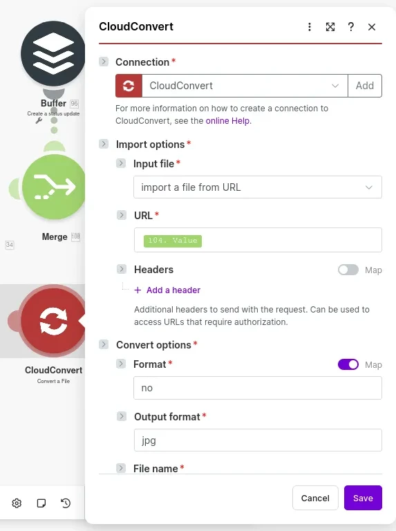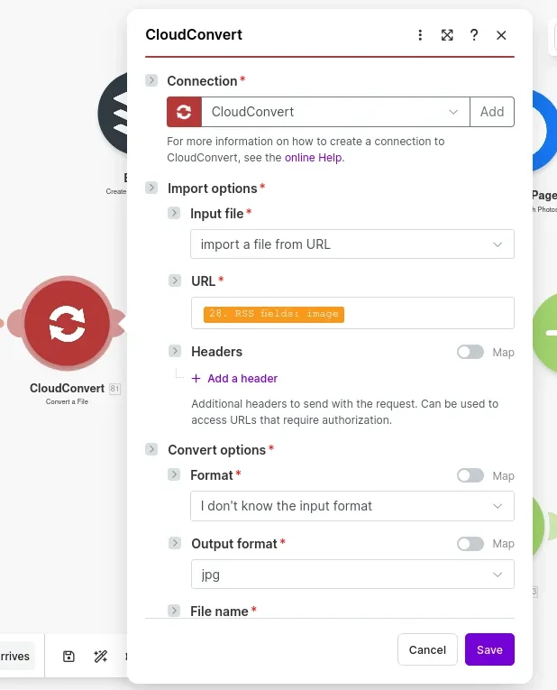 O CloudConvert dá uma URL temporária para as imagens, e assim, começa a brincadeira em outros módulos.