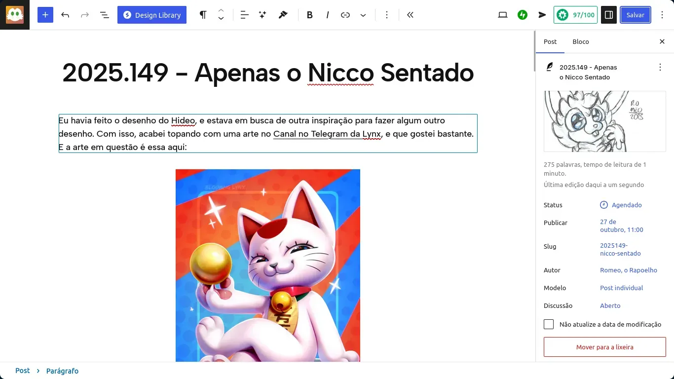 Mas eu ainda tinha vontade de ter um Blog para fazer postagens mais despretensiosas, de coisas que eu não escreveria no Substack. Com isso, voltou a vontade de fazer esse Blog.